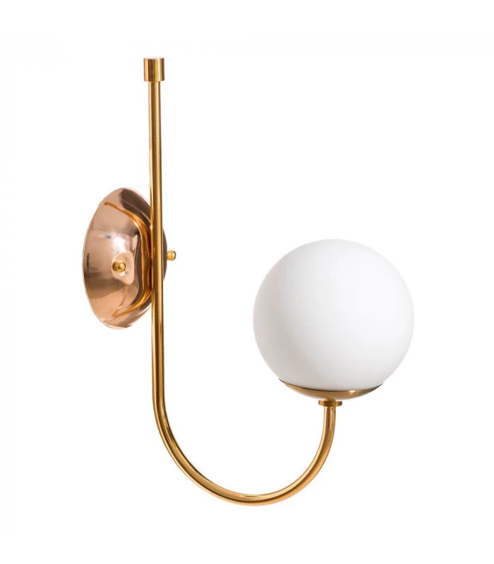 Applique murale classique en métal doré et globe en verre blanc.