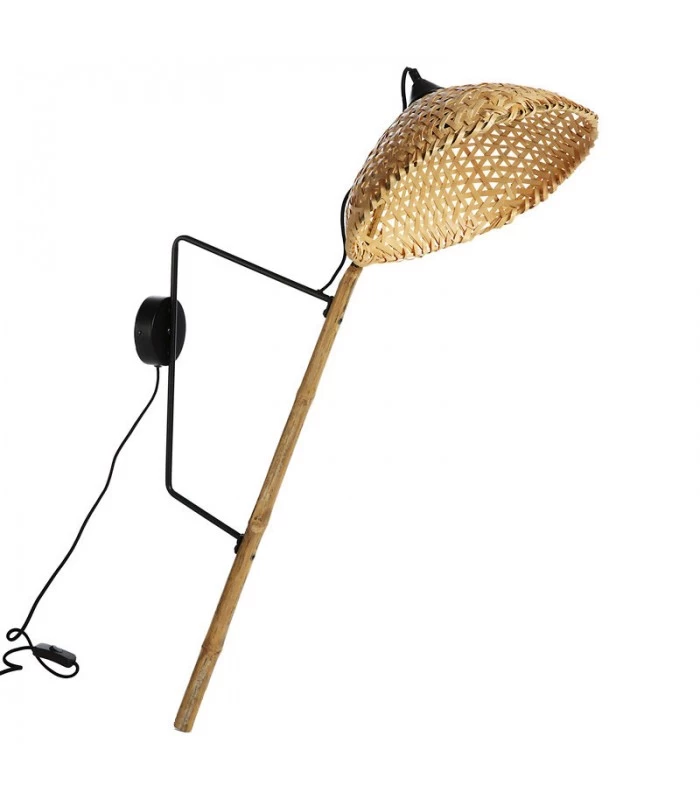 Applique murale en métal noir et bambou. Idéale pour une décoration chaleureuse avec une touche ethnique.