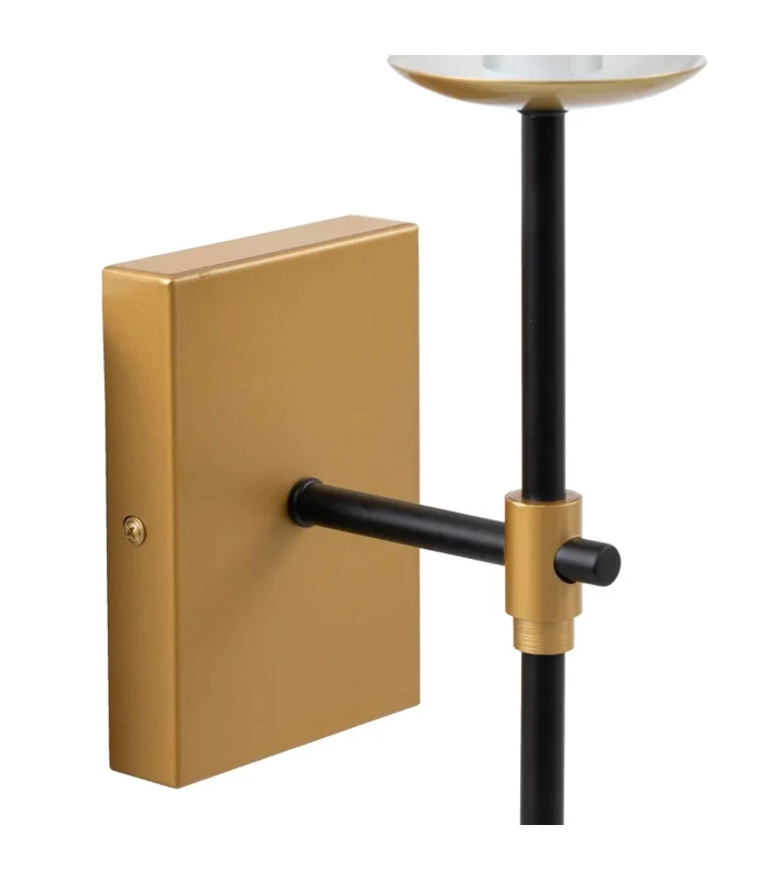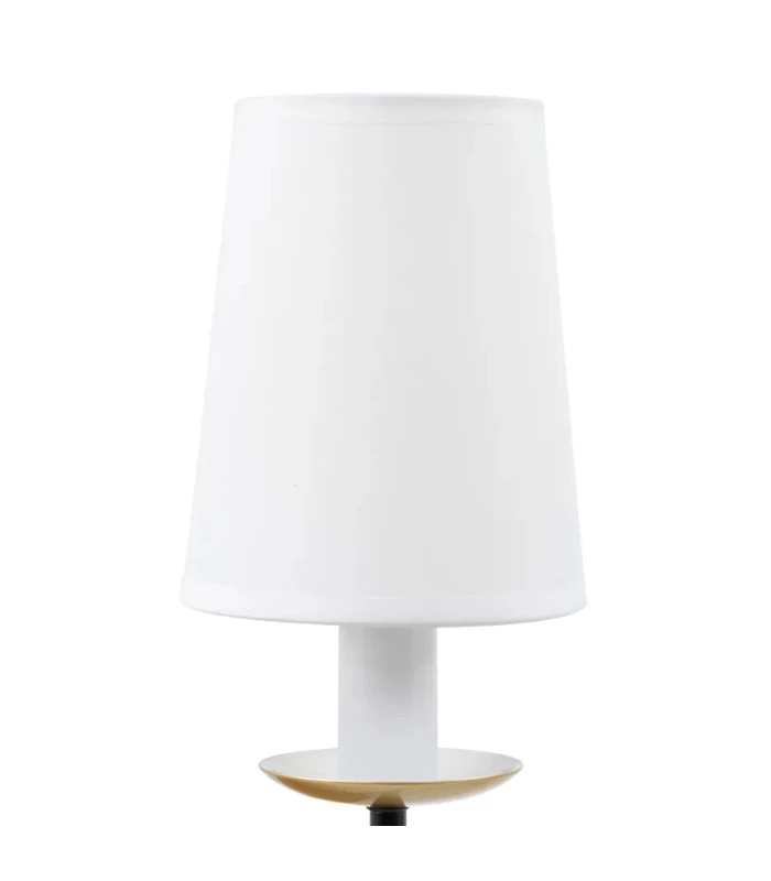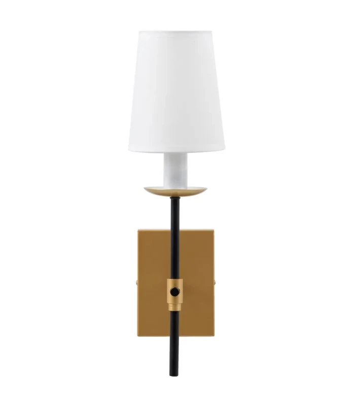 Applique murale classique en métal noir et doré et abat-jour blanc.