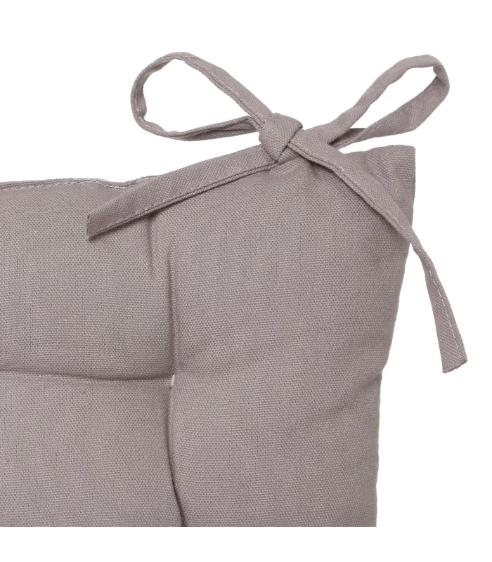 Galette pour chaise couleur grise avec liens d’attache. Offrez-vous une assise confortable dans votre cuisine ou salle à manger grâce à ce coussin de chaise rembourré.