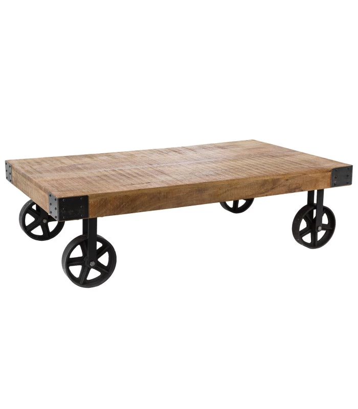 ATMOSPHERA Table Basse Rectangulaire En Bois Et Métal Style Industriel 117×70.5x34cm