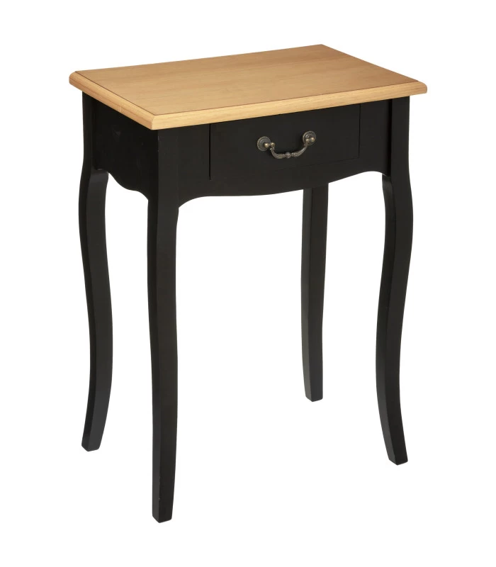ATMOSPHERA Table De Chevet Classique Noir Et Bois 1 Tiroir 47x30x65.5cm