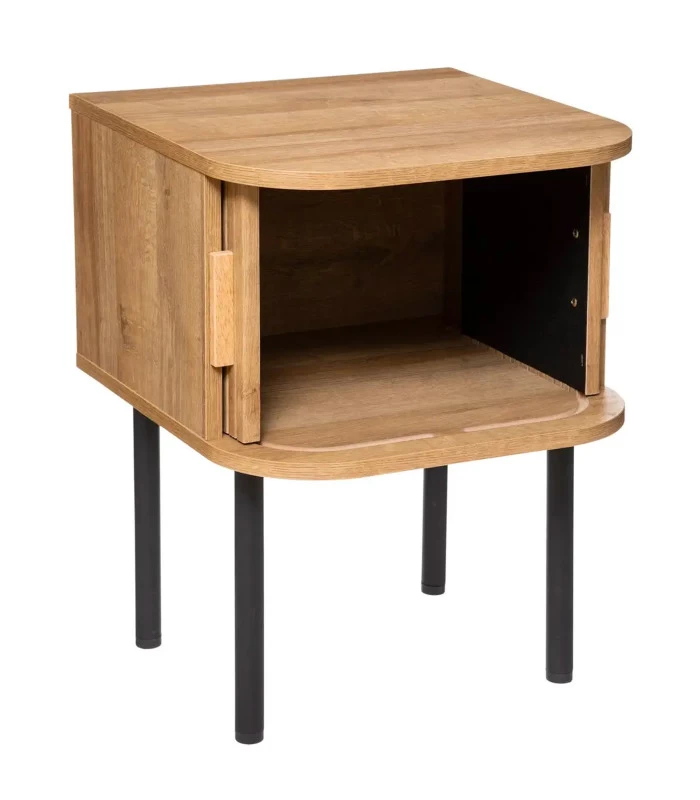 Table de chevet élégante en bois avec placard à portes coulissantes.
