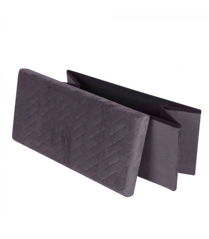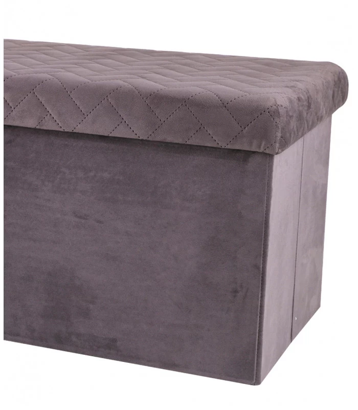 Banquette Coffre De Rangement Velours Gris – 76×37.5×37.5cm