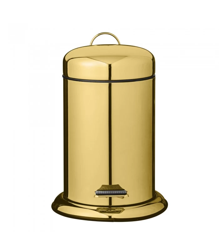 Poubelle de salle de bain à pédale dorée. Cette poubelle de salle de bain ronde est pratique et épurée convenant pour toutes les salles de bain ou salle d’eau.