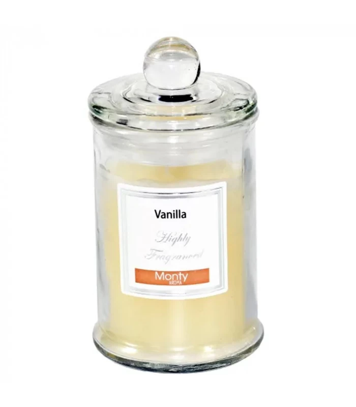 Bougie parfumée décorative dans beau pot en verre.