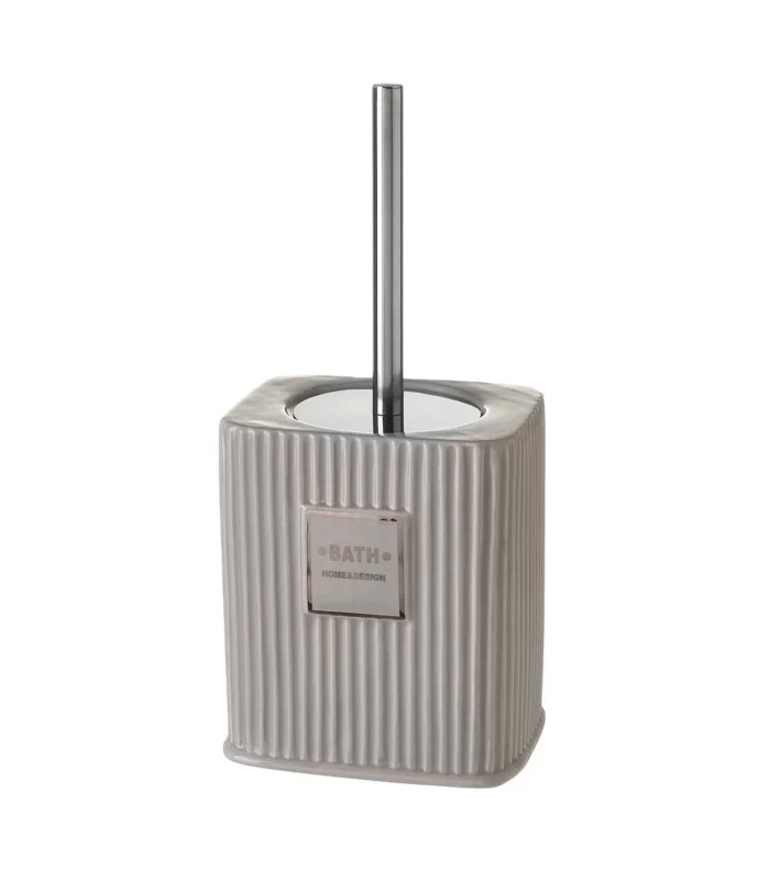 Brosse WC en céramique et métal, blanc et cuivre.