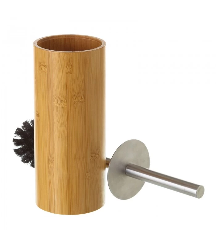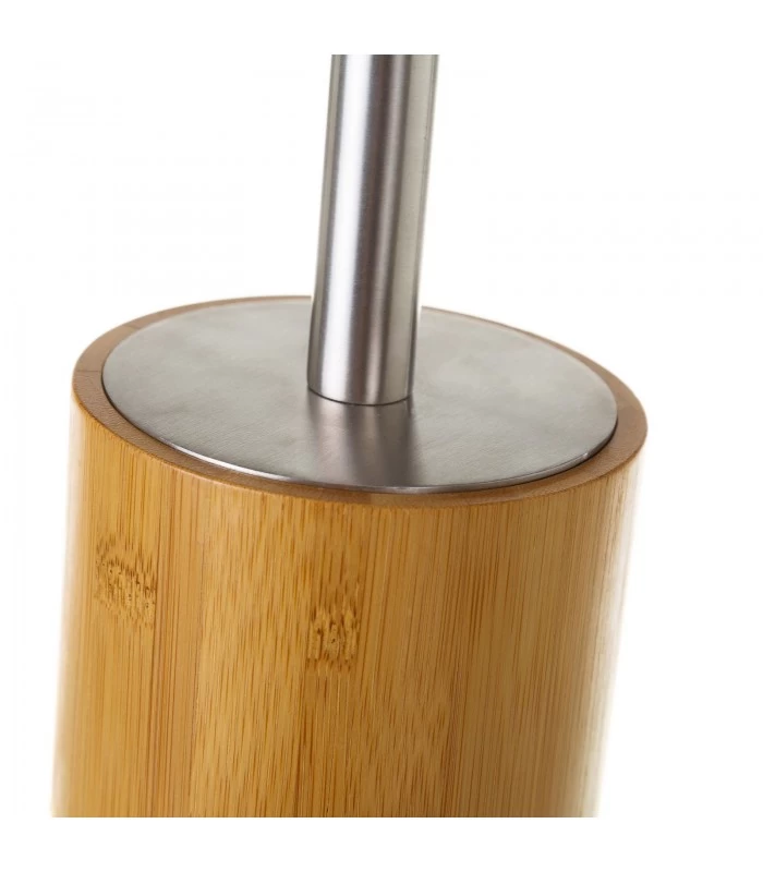 Brosse WC en bambou avec poignée inox et brosse noire.
