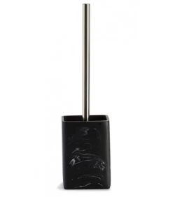 Brosse WC en polyrésine effet marbre noir et métal chromé.