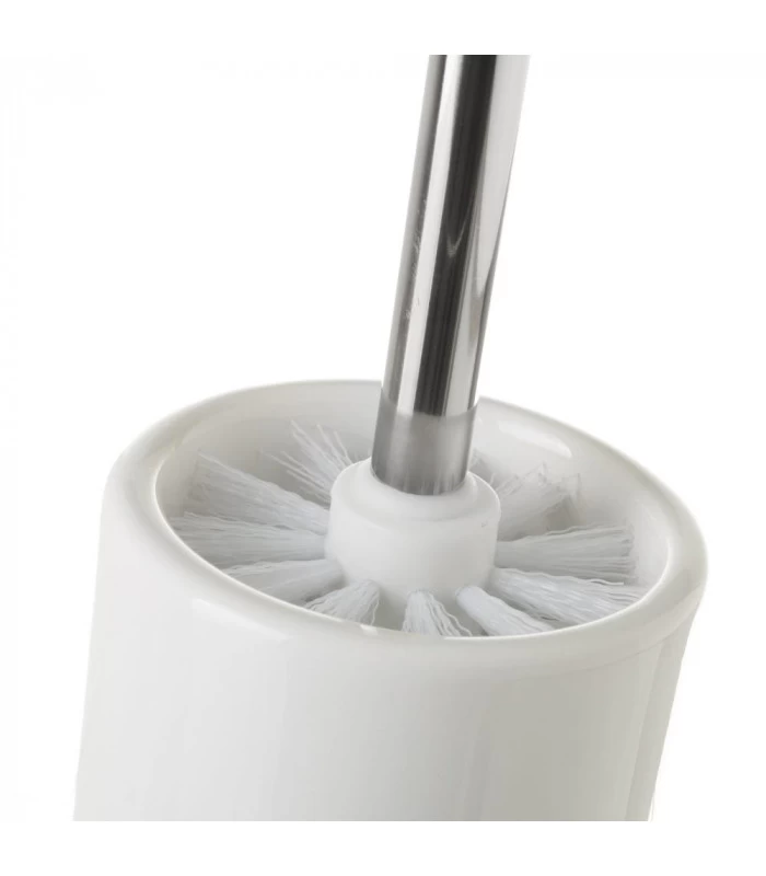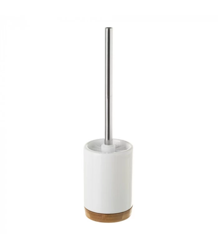 Brosse WC en céramique blanche et bambou.