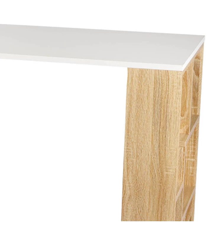 Bureau en bois bicolore blanc et bois avec 10 niches de rangement.