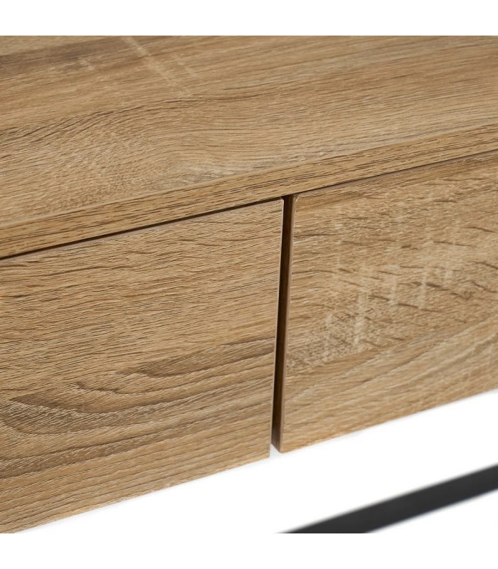 Bureau secrétaire comprenant deux tiroirs en bois MDF et métal noir.