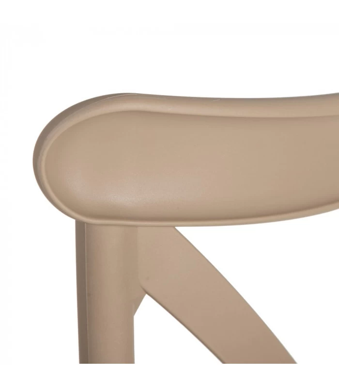 Chaise esprit bistrot en polypropylène beige, empilable. Une chaise que l’on met aussi bien dehors que dedans.