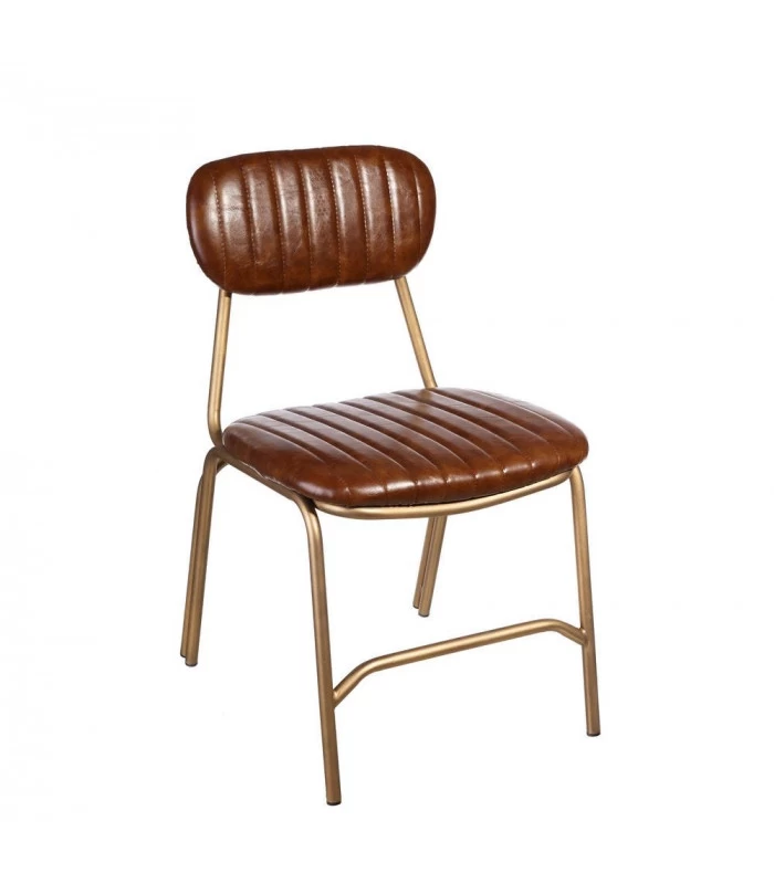 Chaise esprit bistrot en métal doré et similicuir marron.