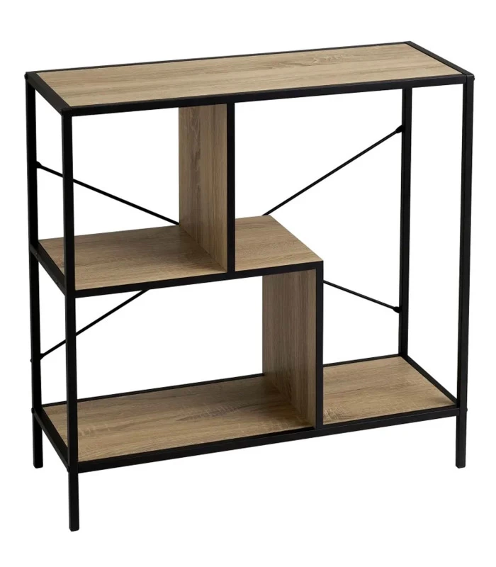 Console d’entrée en bois MDF et métal noir comprenant 3 plateaux. Très facile à monter. Poids supporté par chaque étagère: 5kg.