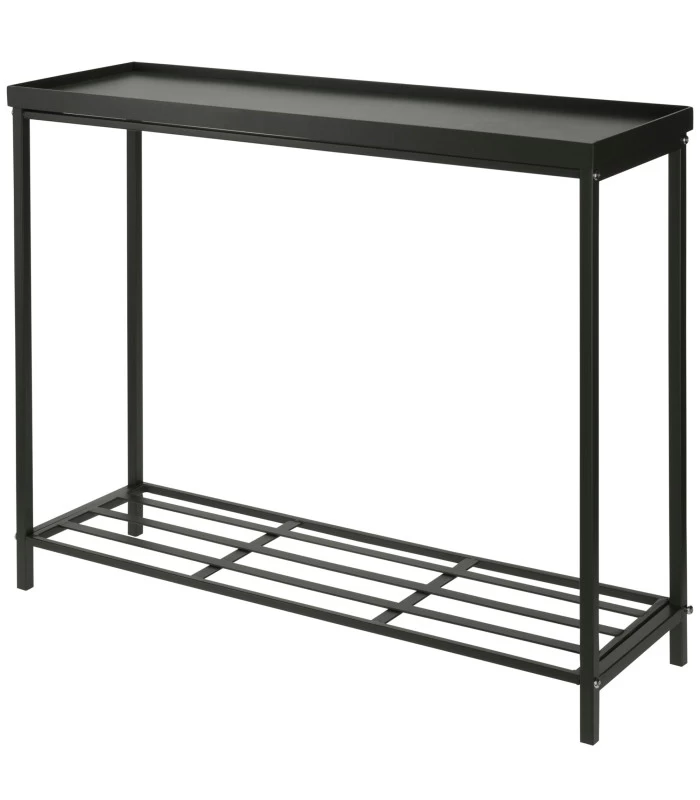 Console étagère en métal noir à 2 plateaux.