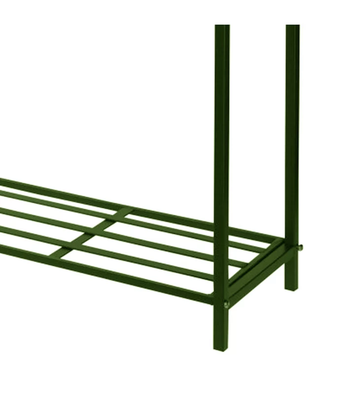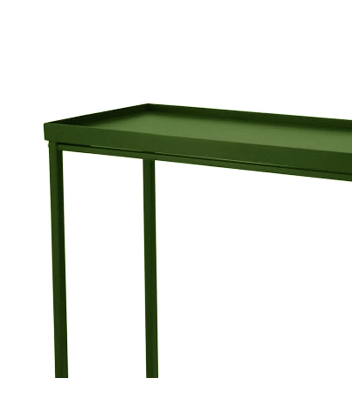 Console étagère en métal vert à 2 plateaux.