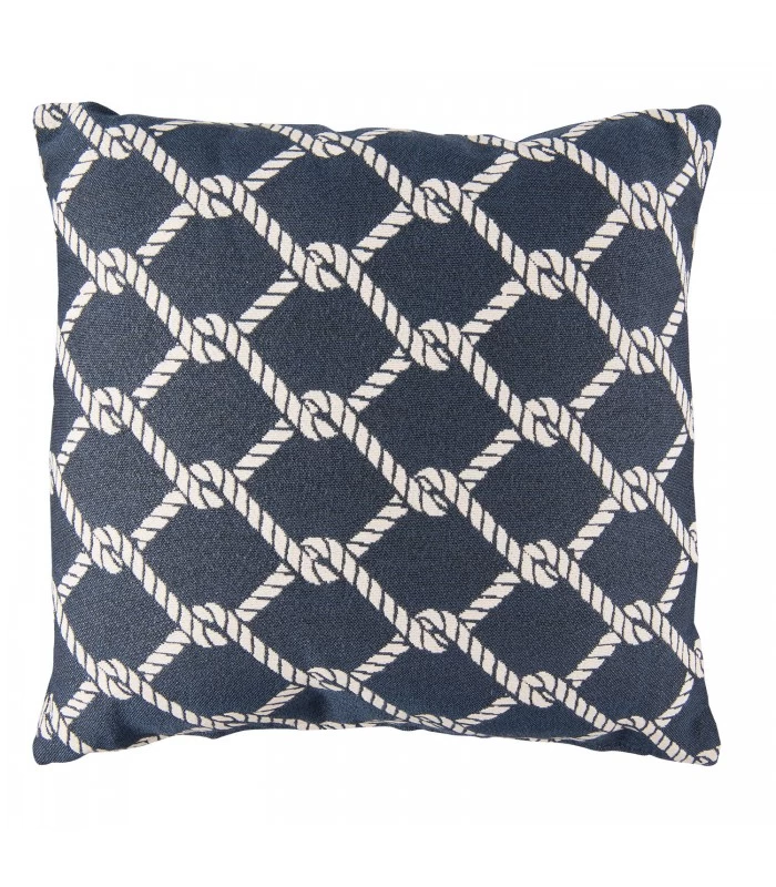 Coussin carré garni esprit bord de mer, motifs corde.