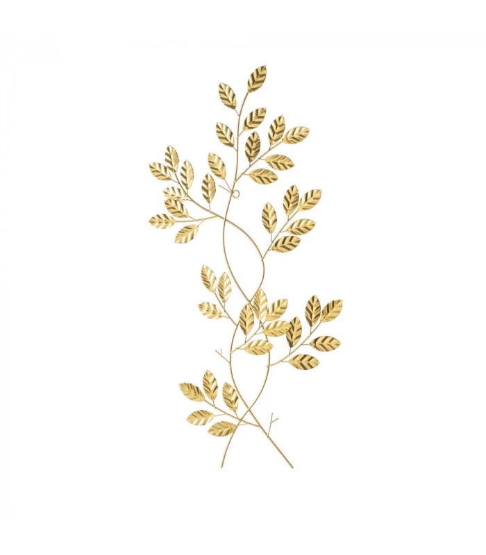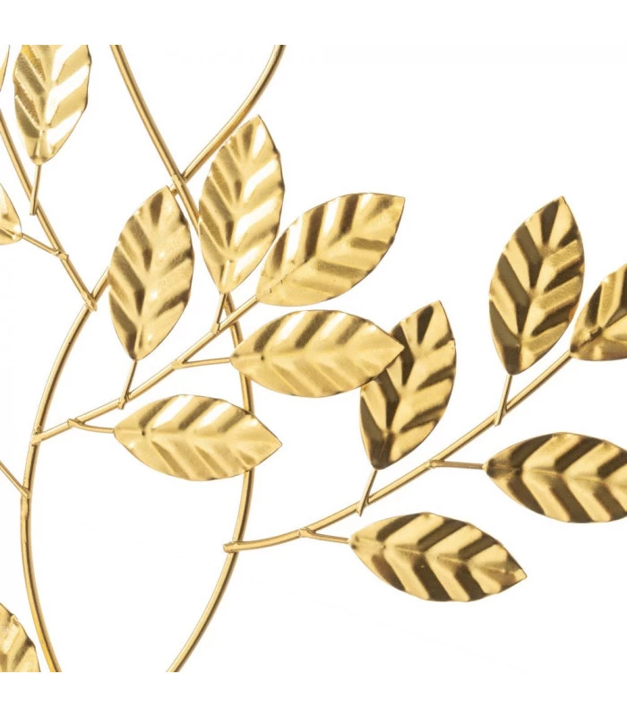 Belle décoration murale en métal doré représentant des branches avec feuilles.