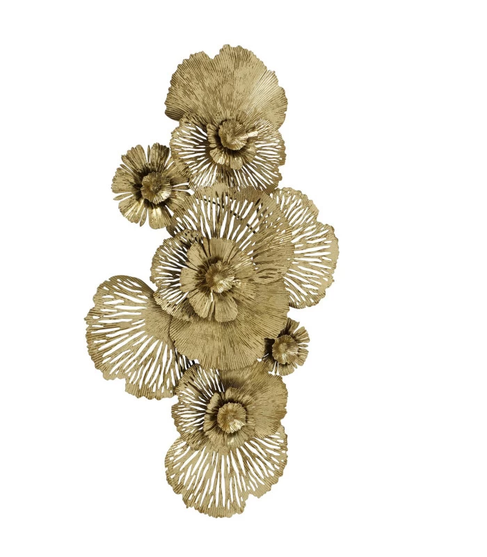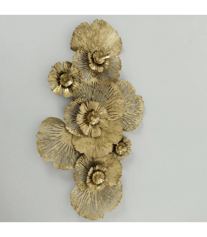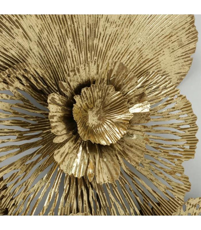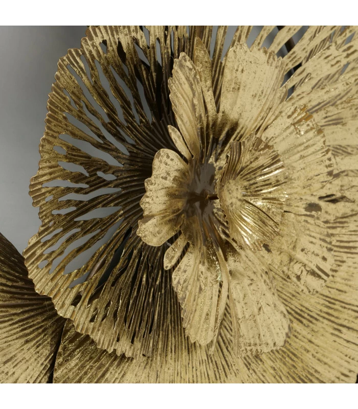 Grande et belle décoration murale en métal doré représentant des fleurs.