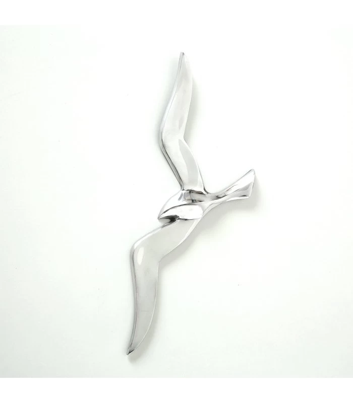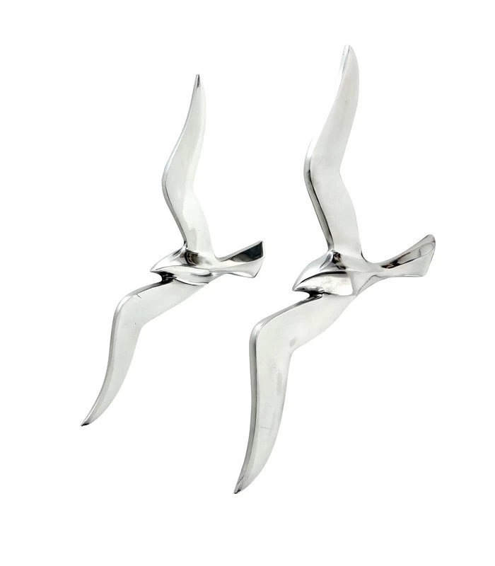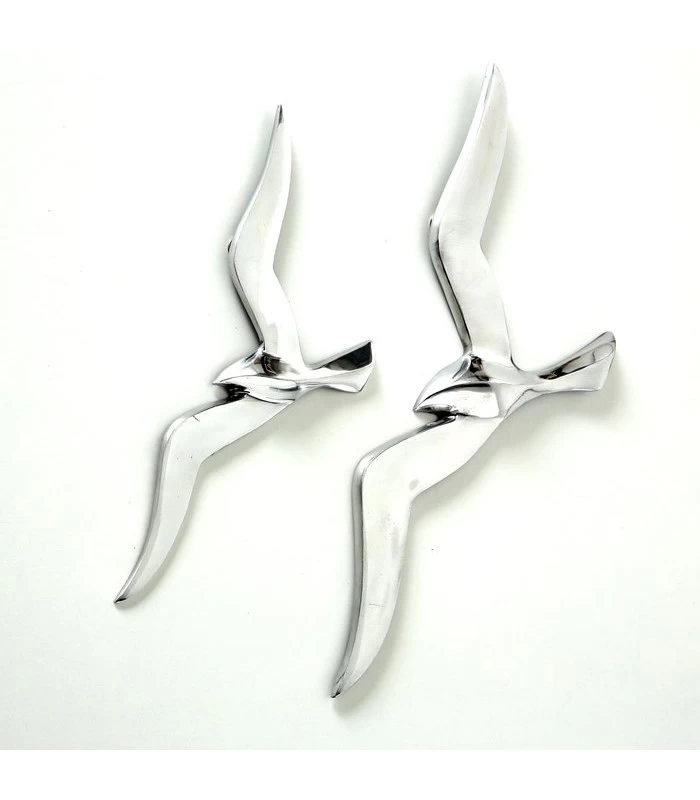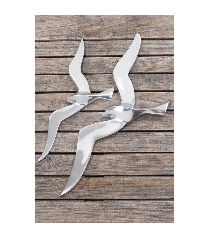 Belle décoration murale en métal argenté représentant un vol de mouettes. Idéale pour une décoration de bord de mer.