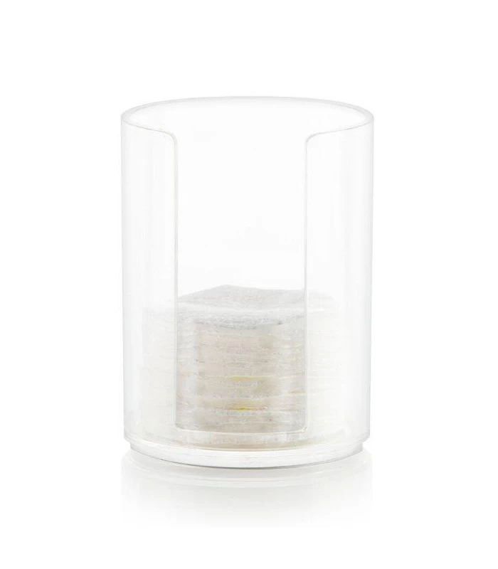 Distributeur de coton démaquillants disques pour salle de bain en acrylique sobre et pratique.
