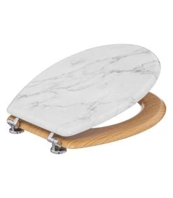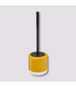 Distributeur de savon de salle de bain en céramique et bambou.