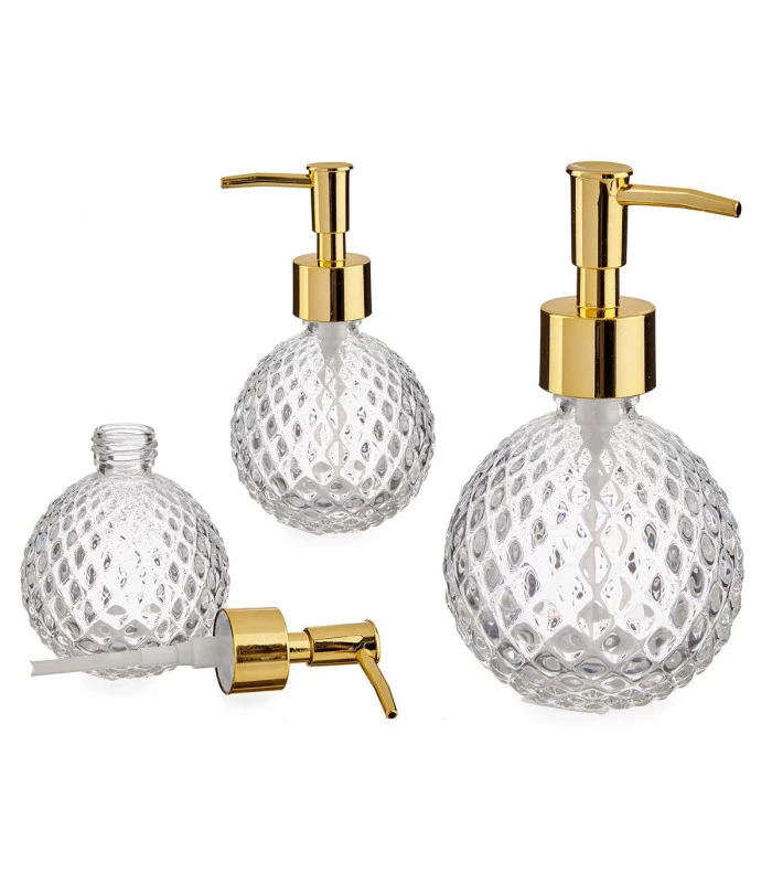 Distributeur de savon en verre motifs embossés et ABS doré.