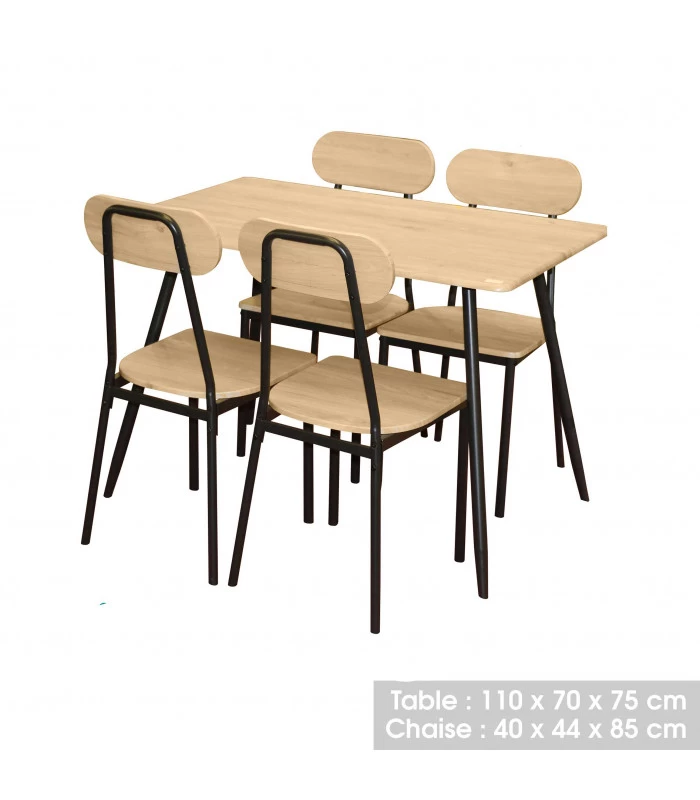 Ensemble Table Salle à Manger Rectangulaire Bois Et Métal Noir + 4 Chaises