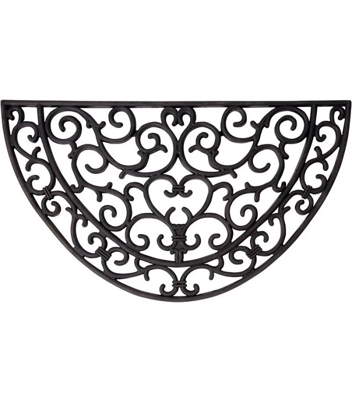 Paillasson en caoutchouc noir, forme demi-lune, avec motifs arabesques.