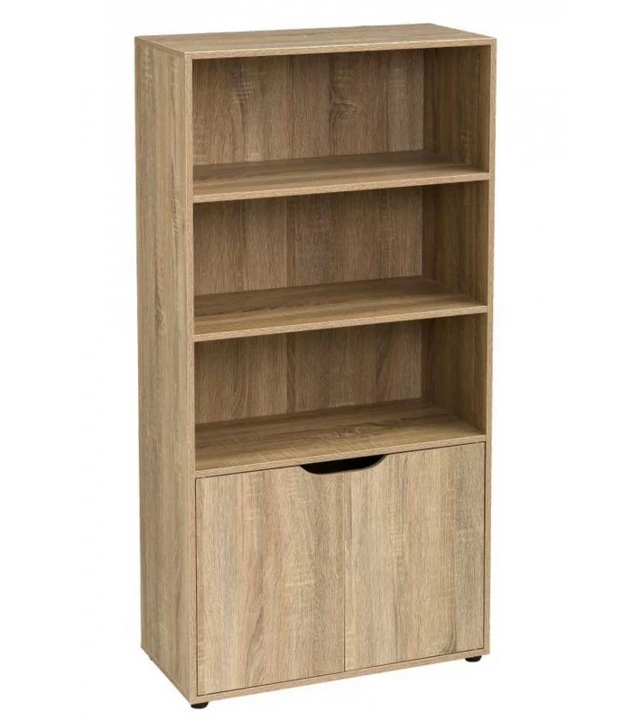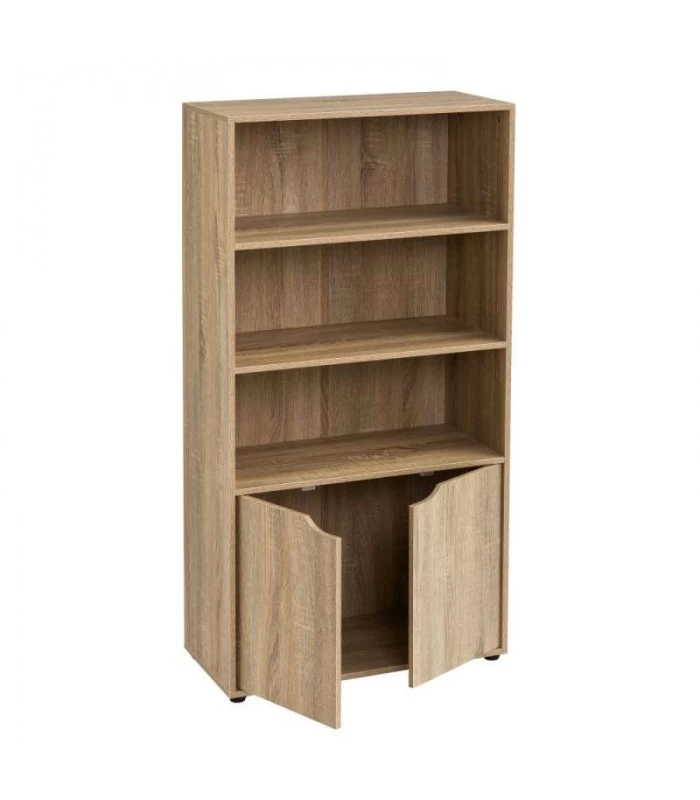Étagère bibliothèque comprenant 3 étagères et un placard avec 2 portes.