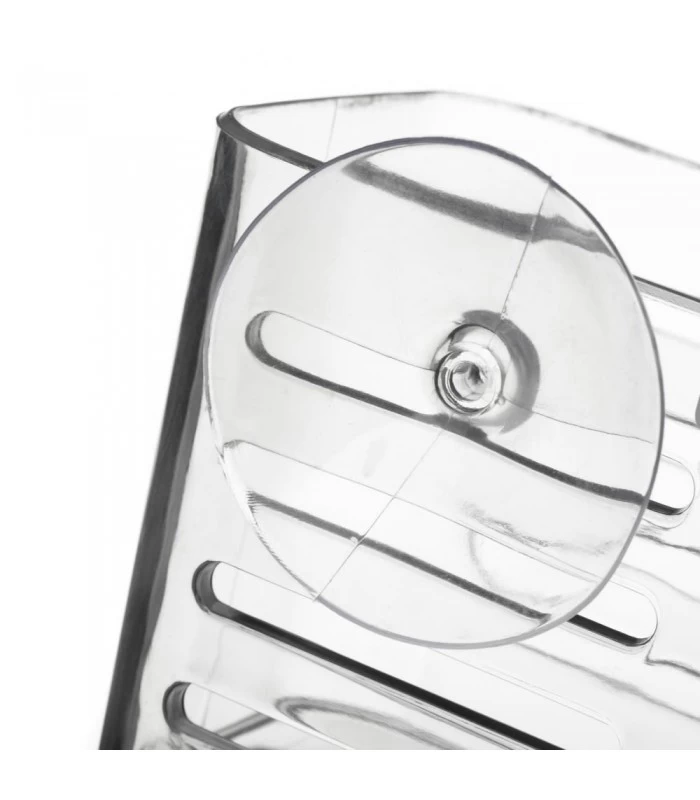 Étagère murale transparente à ventouses pour douche ou baignoire.
