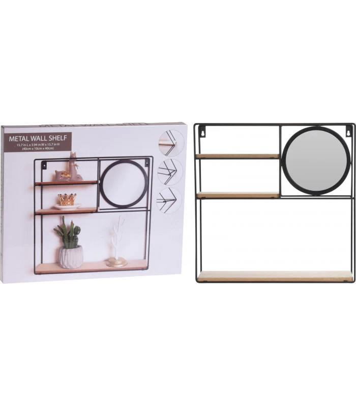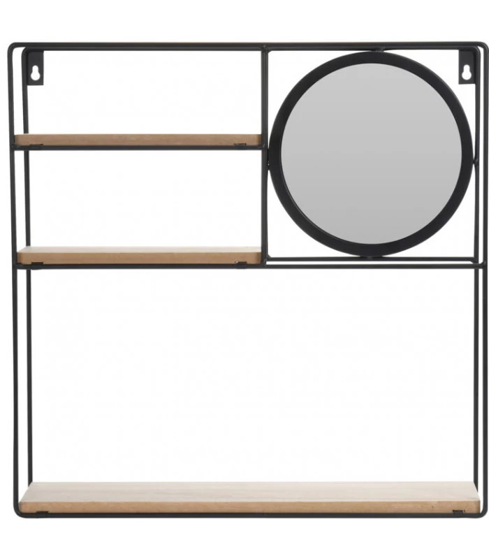 Étagère murale en métal noir et bois pour disposer des petits bibelots, de la petite décoration, des petites plantes….