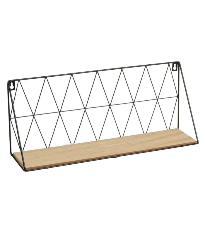 Étagère murale en métal noir et bois MDF pour disposer petites bibelots, petite décoration, petites plantes….