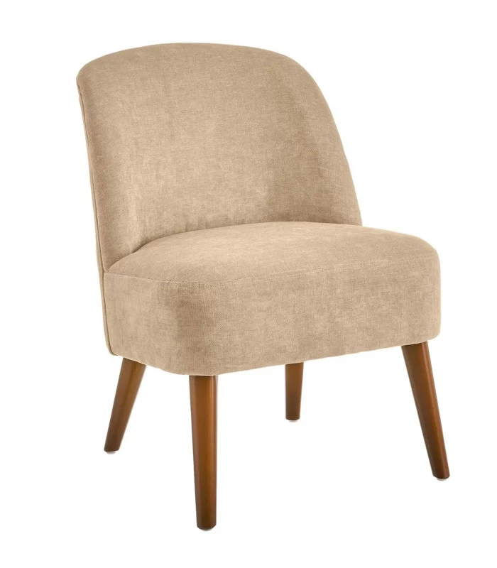 Fauteuil Beige Tissu Chenille Pieds En Bois 52x58x71cm