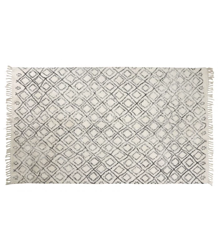 Très beau tapis en coton de couleur noir et blanc crème motifs triangles. Ce tapis d’inspiration tapis berbère apporte une touche décorative chaleureuse et tendance à votre intérieur.