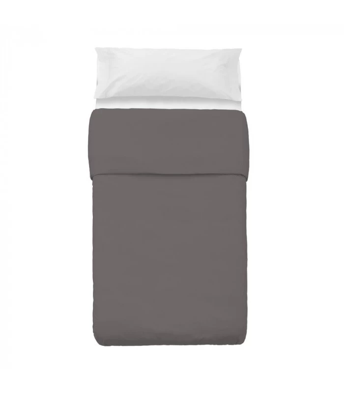 Housse de couette grise en coton et polyester pour lit de 90 avec double ouverture latérale pour uns installation facilitée de la couette à l’intérieur.