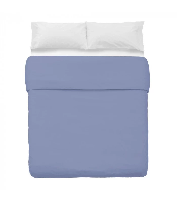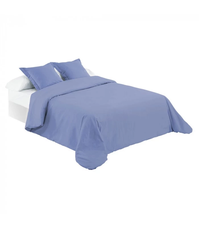 Housse de couette bleue en coton et polyester pour lit double avec double ouverture latérale pour uns installation facilitée de la couette à l’intérieur.