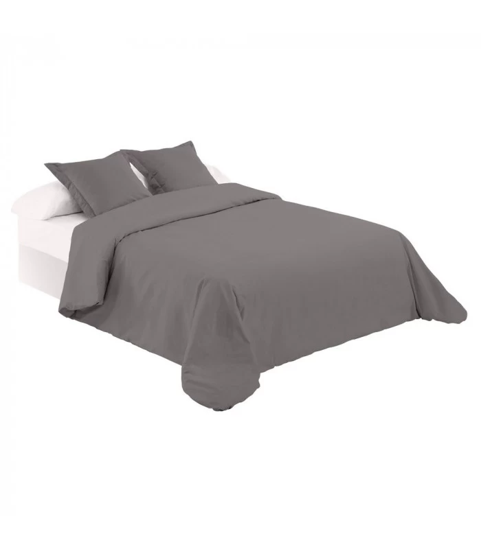 Housse de couette grise en coton et polyester pour lit king size avec double ouverture latĂ©rale pour uns installation facilitĂ©e de la couette Ă l’intĂ©rieur.