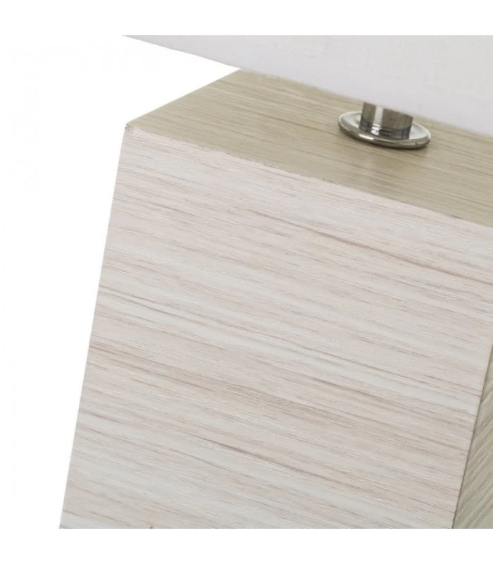 Lampe de chevet ou lampe d’appoint avec base en bois MDF Blanchi et abat-jour blanc.