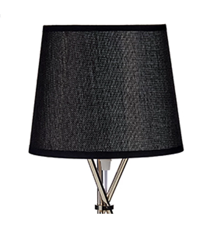 Petite lampe à poser avec base en métal chromé et abat-jour noir.