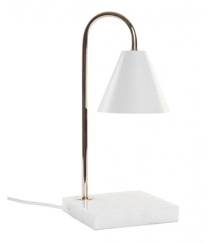 Très belle lampe composée d’une base en marbre blanc, d’une structure en métal doré et d’un abat-jour blanc.