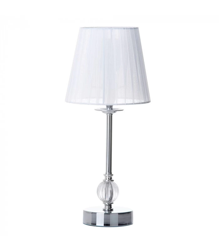 Lampe à poser en métal argenté, acrylique et abat-jour en tissu plissé blanc. Longueur câble: 150cm (blanc).