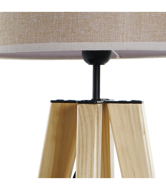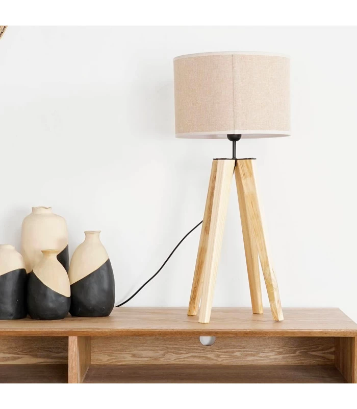 Lampe trépied bois et abat-jour couleur beige. Une lampe élégante au style naturel.