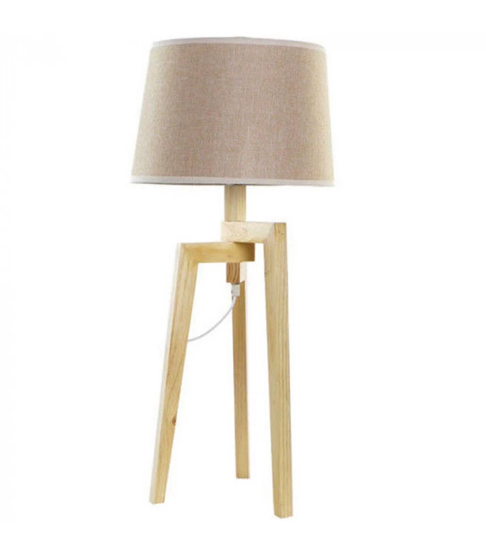 Lampe trépied bois et abat-jour couleur marron/beige. Une lampe élégante au style naturel.