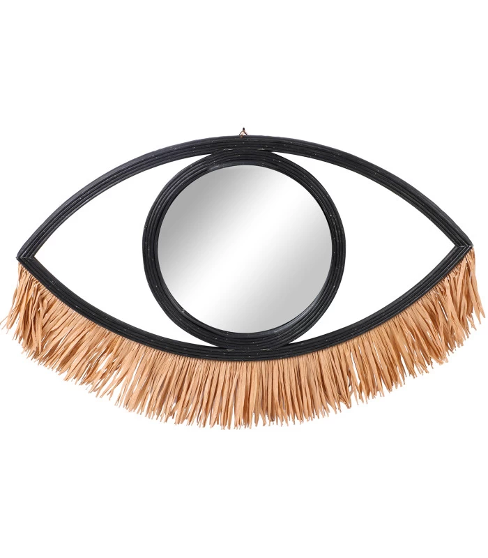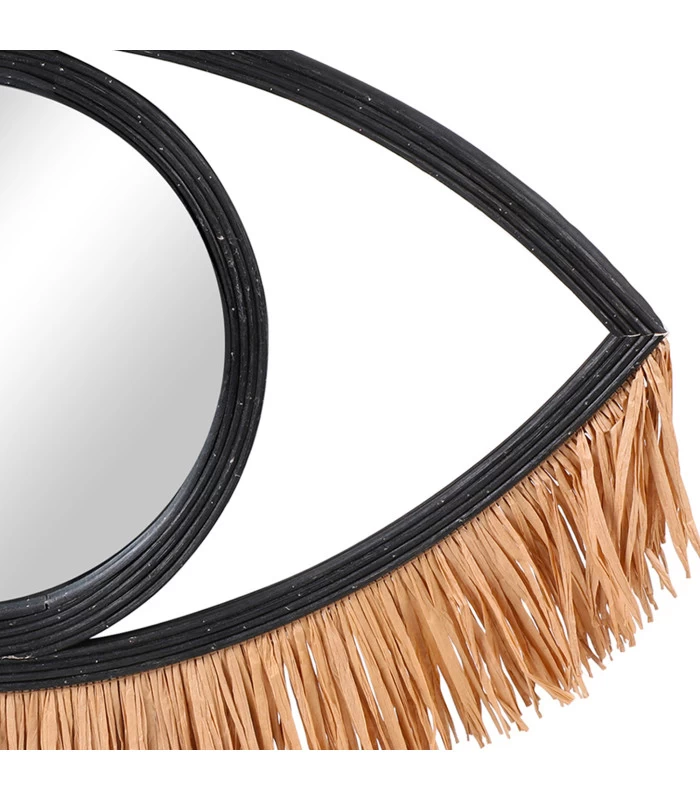 Miroir oeil en rotin noir et raphia qui apporte une touche déco chaleureuse à votre intérieur!