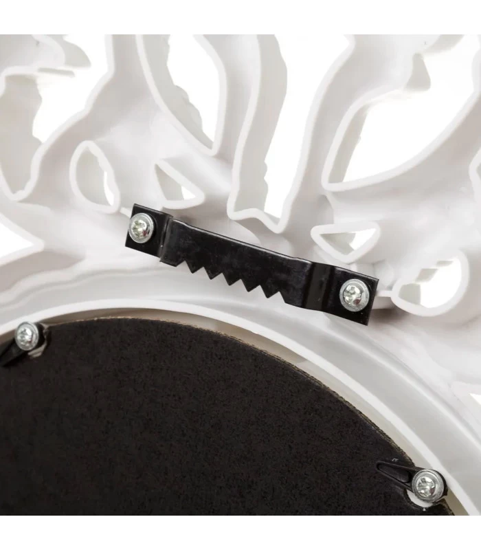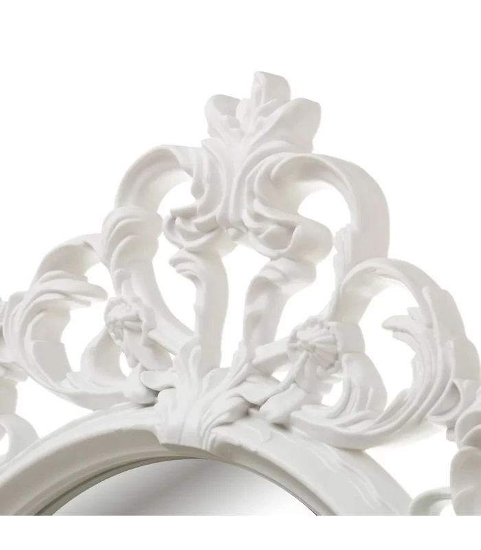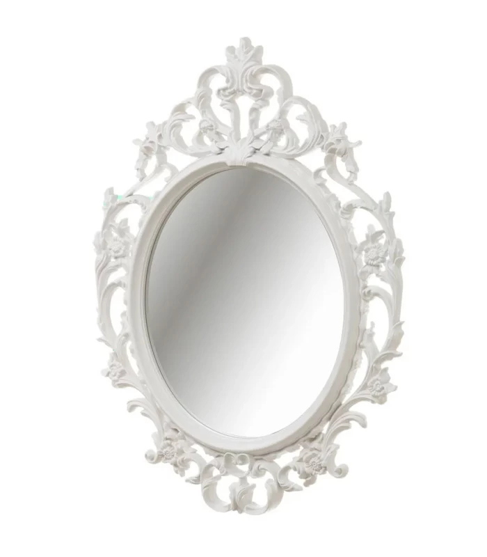 Miroir mural ovale avec moulures blanches en polypropylène.