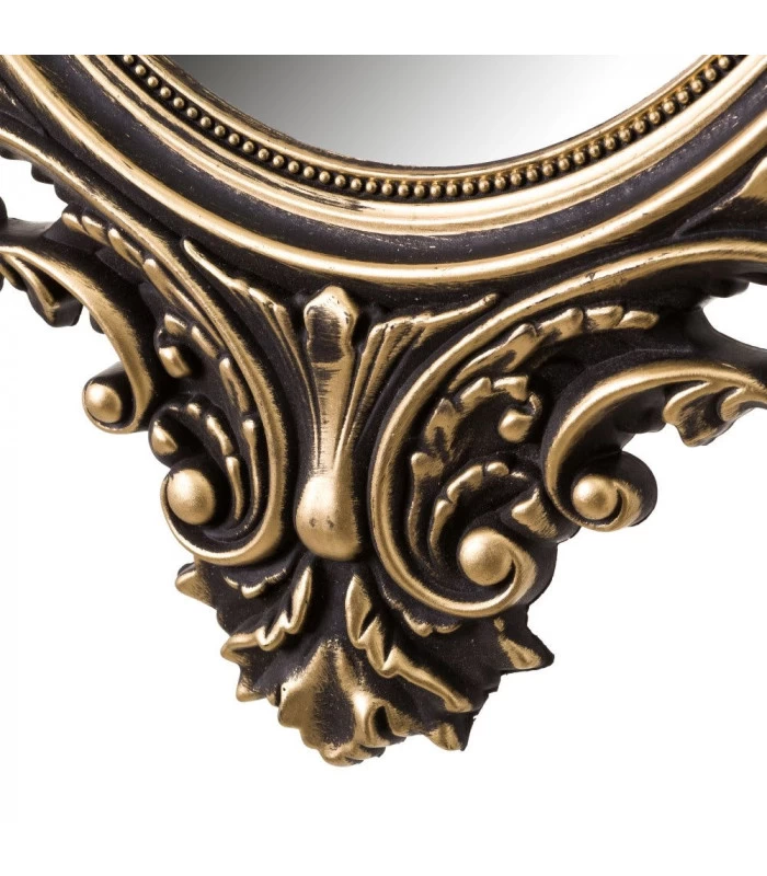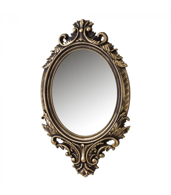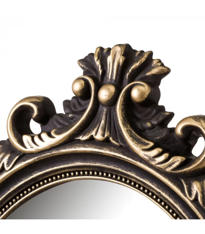 Miroir mural ovale avec moulures dorées en polypropylène.