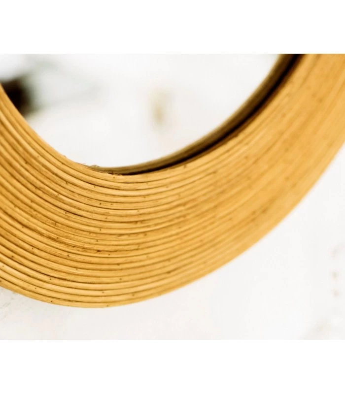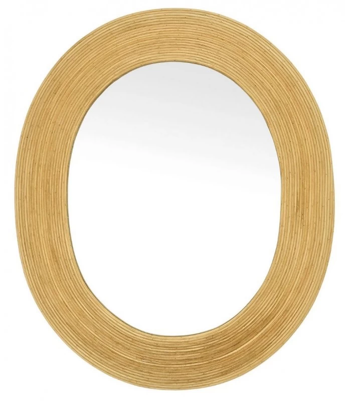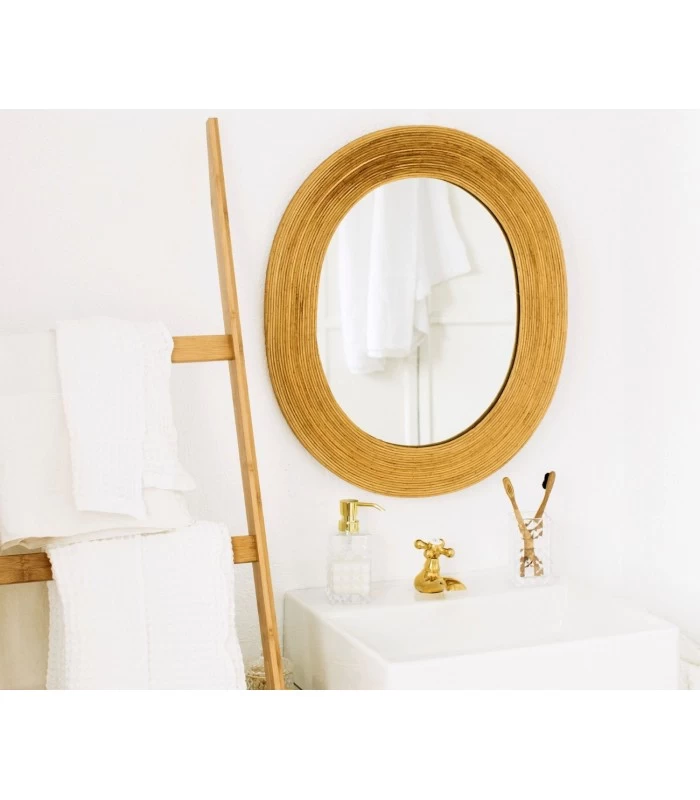 Miroir mural ovale avec cadre en bois, façon rotin nature. Ce miroir apporte une touche déco naturelle qui convient aussi bien dans un couloir que dans une salle de bain.