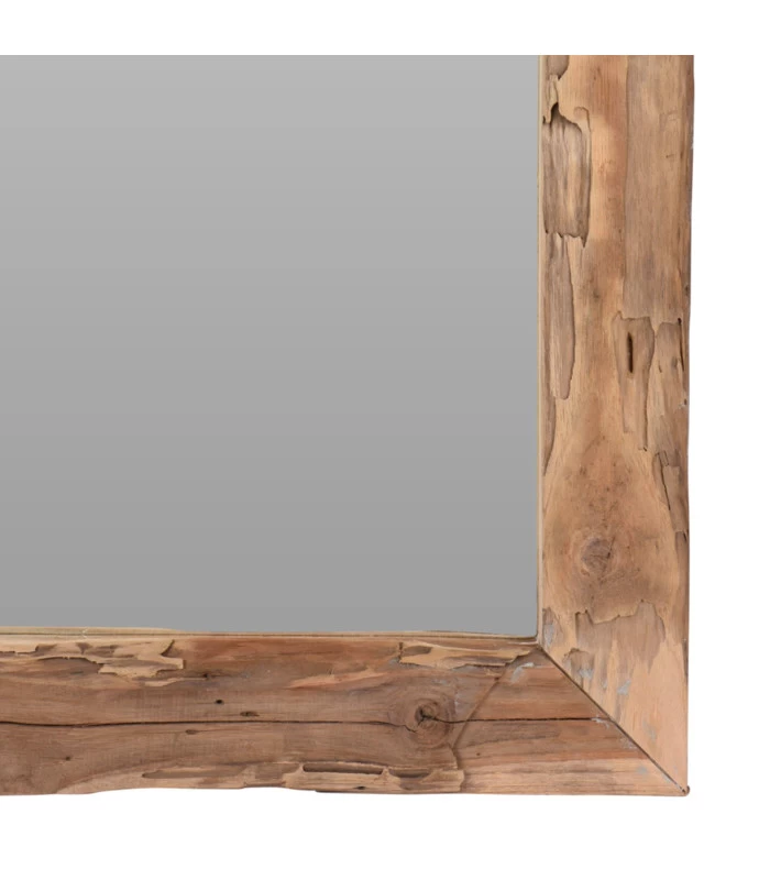 Miroir mural rectangulaire en bois teck recyclé. Finition rustique.